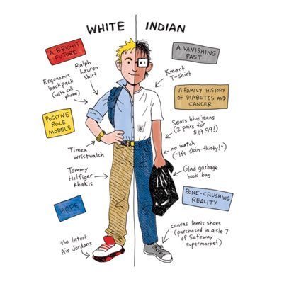 ”Bestselling author Sherman Alexie tells the story of Junior, a budding cartoonist growing up on the Spokane Indian Reservation. Determined to take his future into his own hands, Junior leaves his troubled school on the rez to attend an all-white farm town high school where the only other Indian is the school mascot.